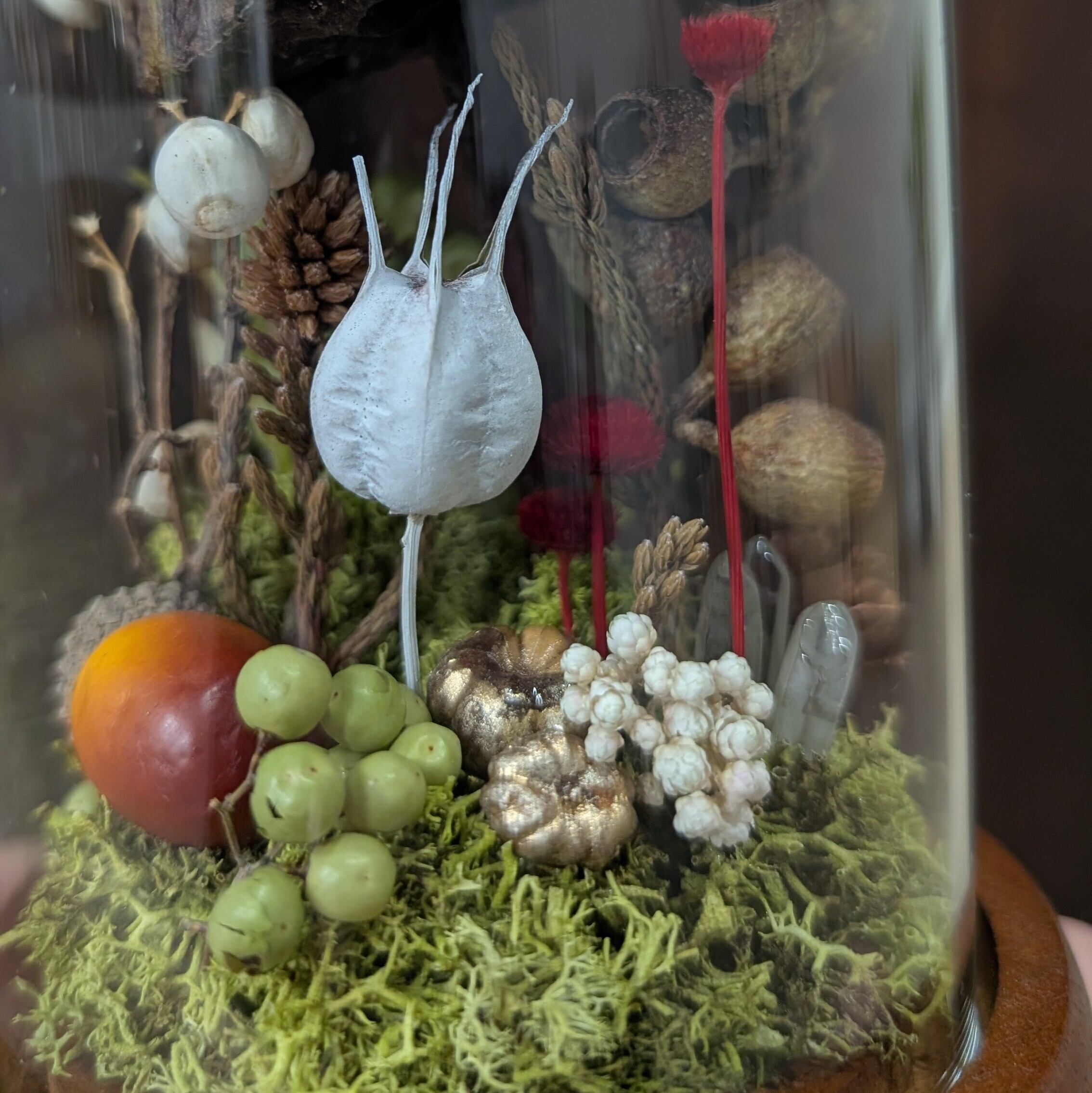 キノコにみたてたプリザーブドフラワー、ドライフラワー等を使った商品となっております。