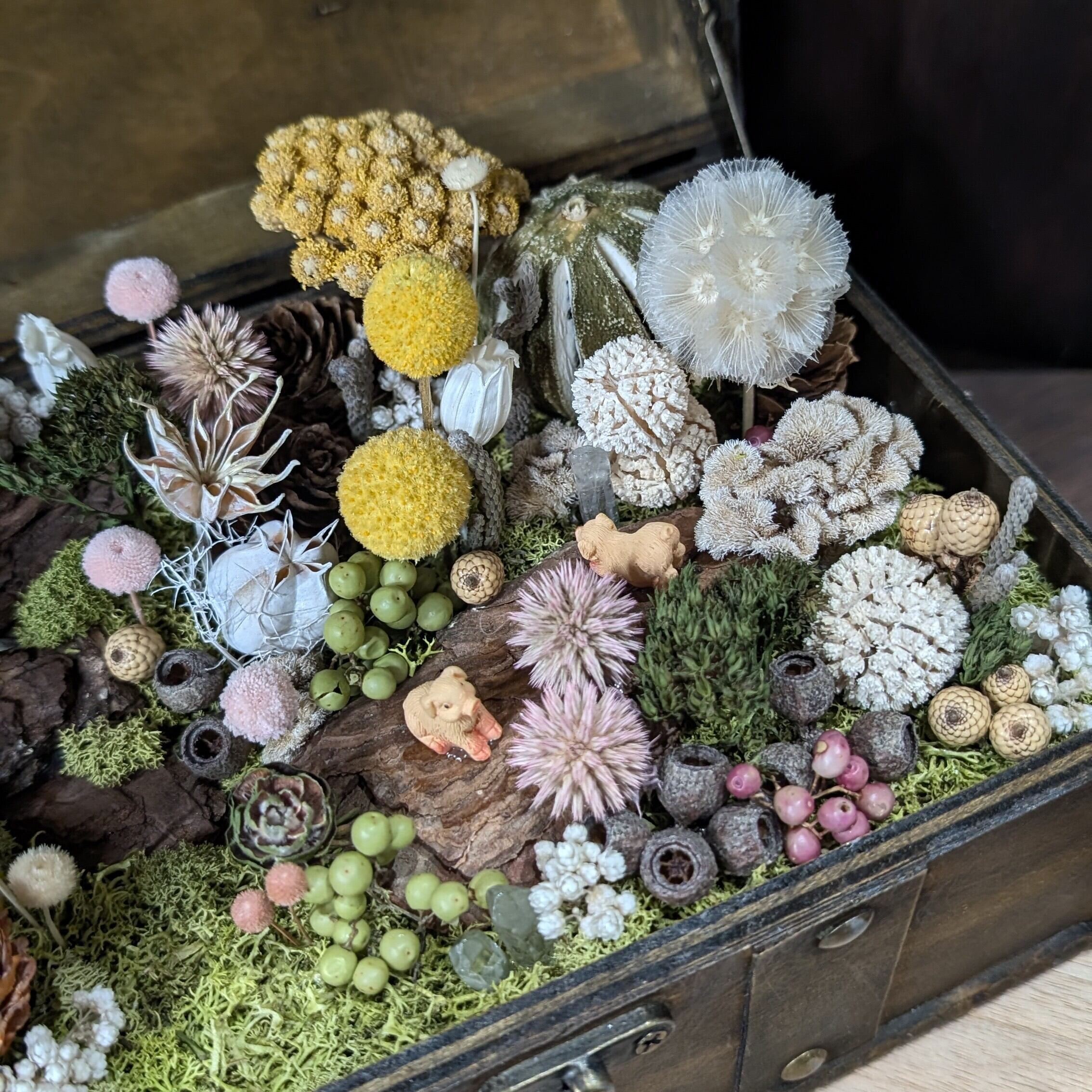 プリザーブドフラワー、ドライフラワー等を使った商品となっております。