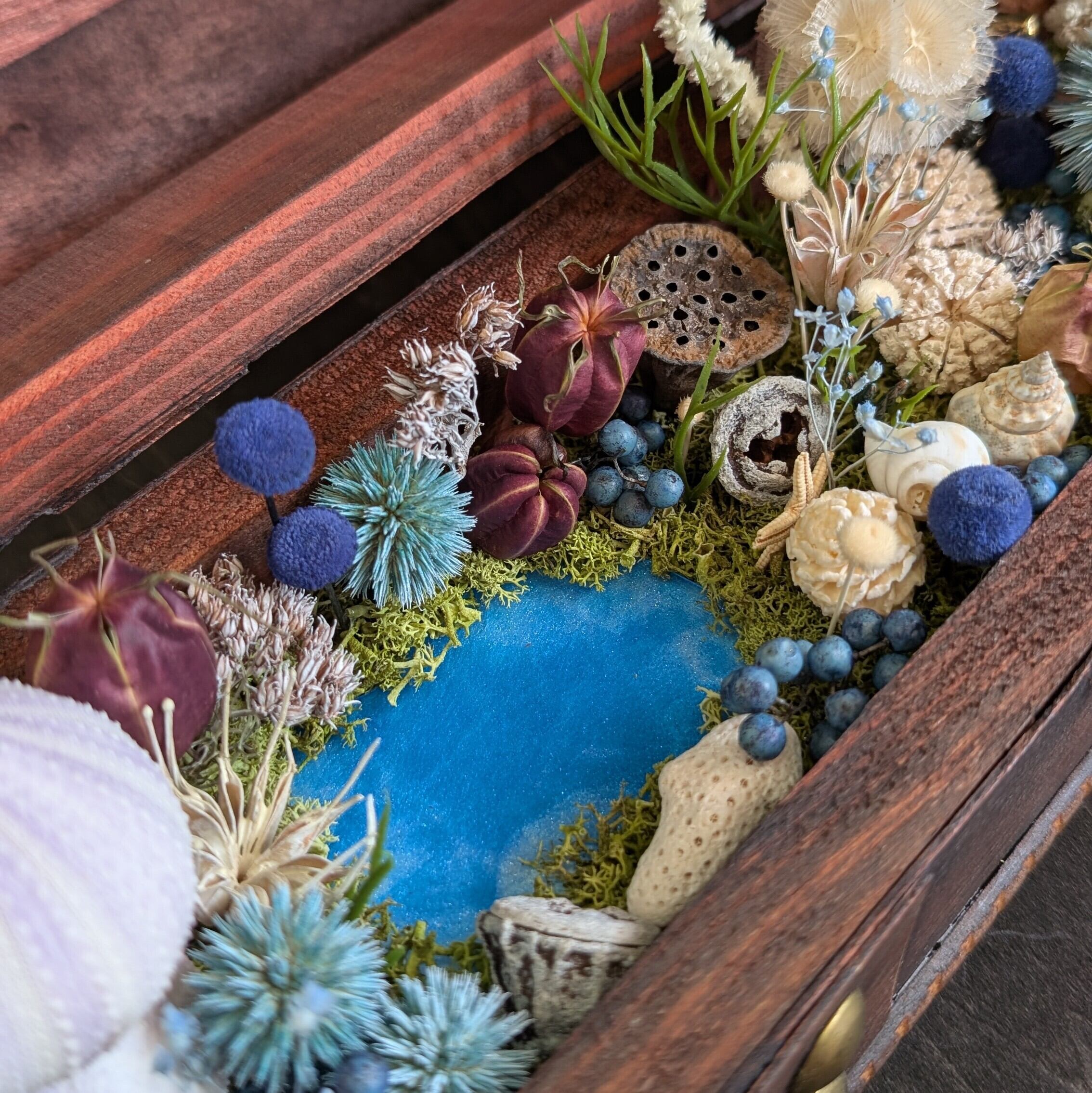 プリザーブドフラワー、ドライフラワー等を使った商品となっております。