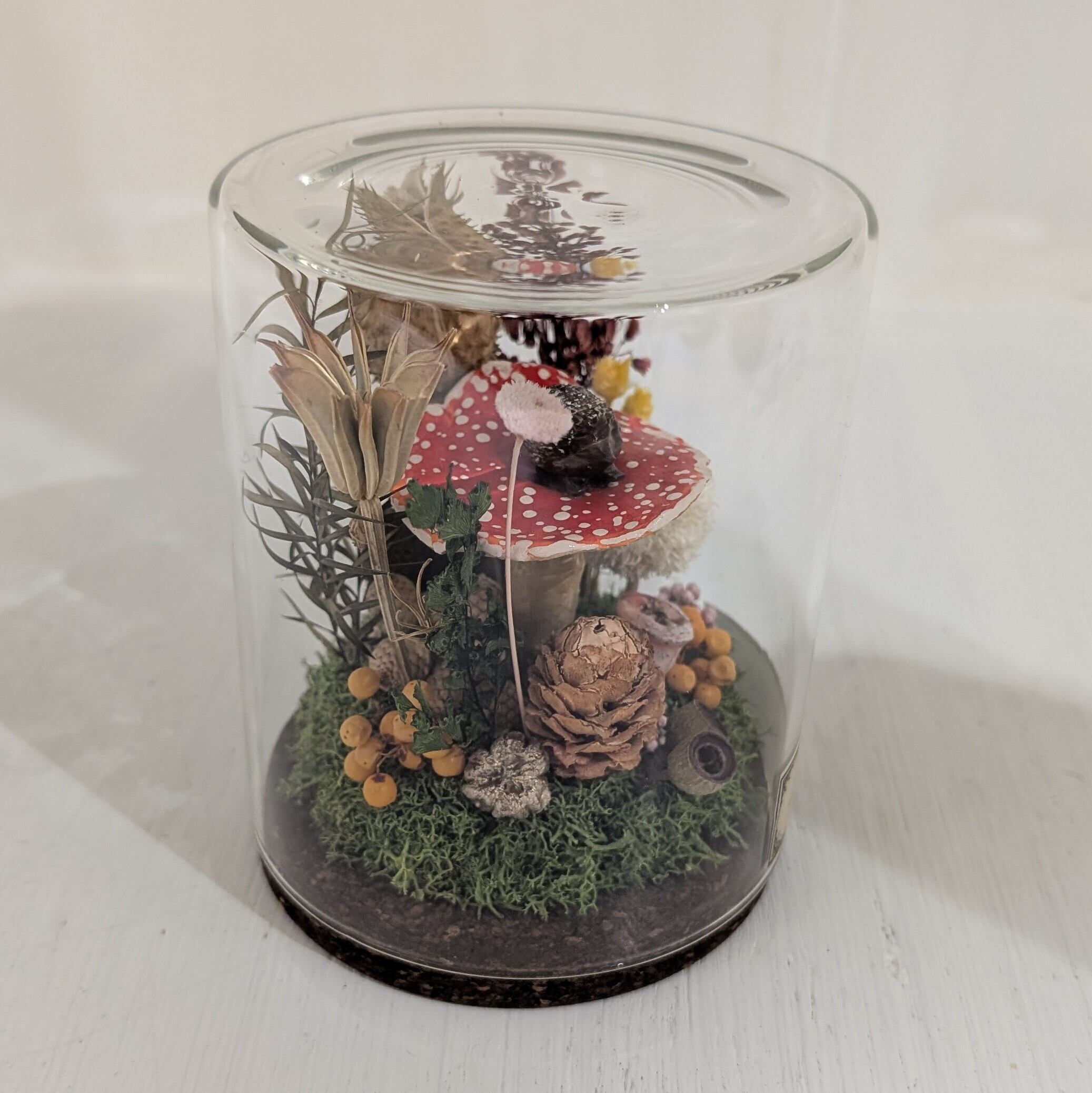 ガラスの瓶に閉じ込めたきのこの標本
