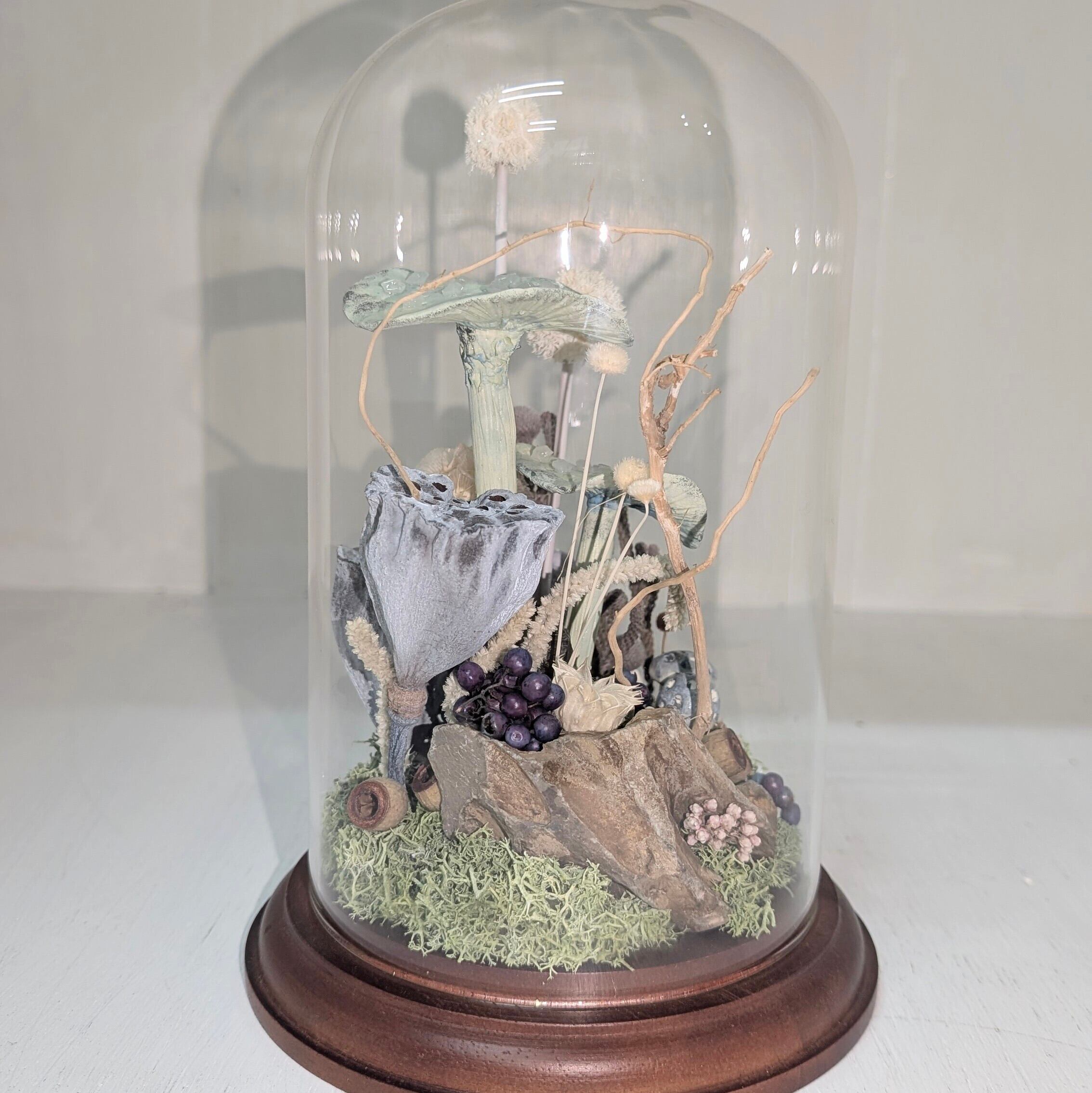 ガラスの瓶に閉じ込めたきのこの標本
