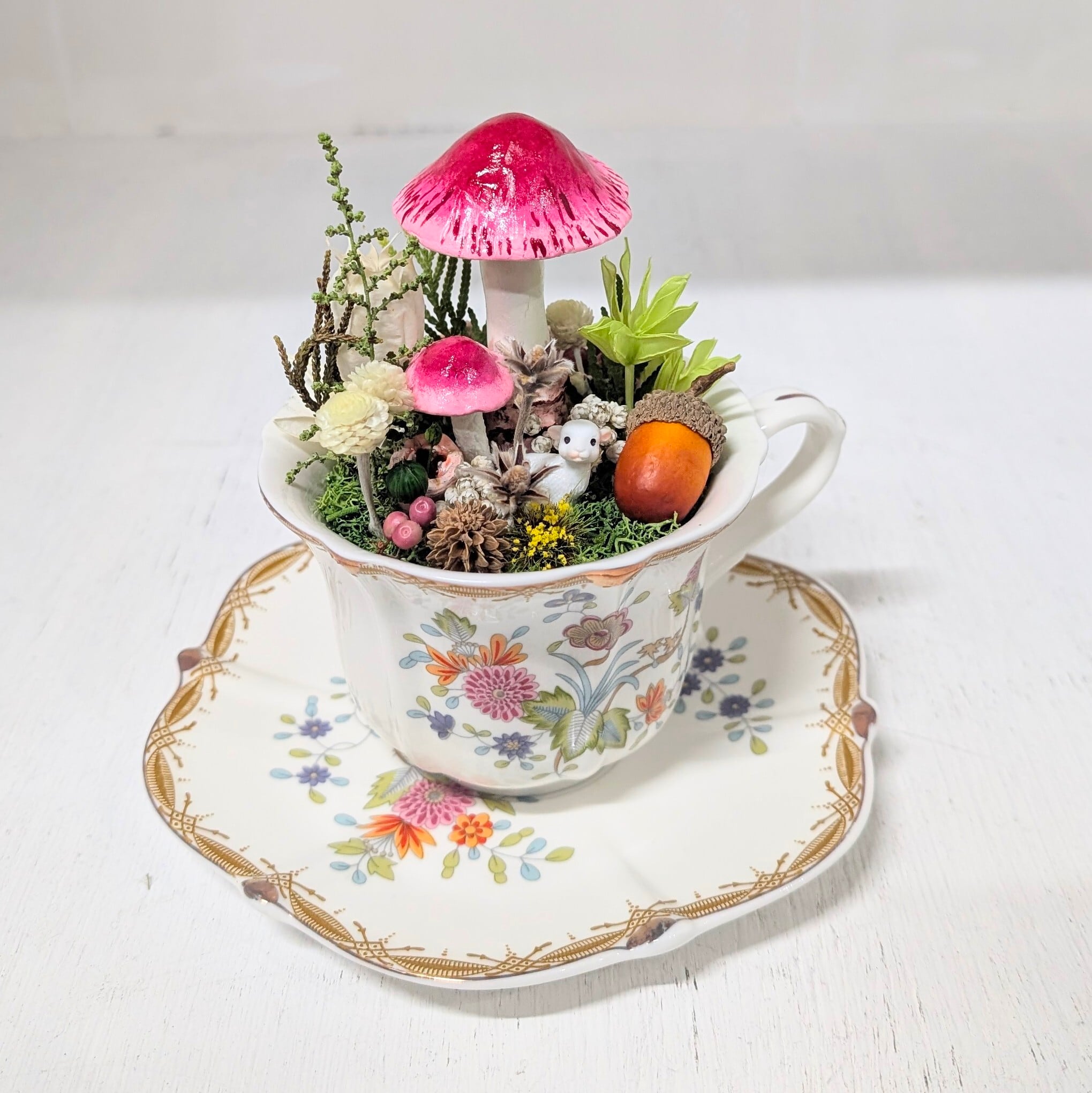 物語に出てくる羊住む森をイメージしたティーカップのインテリア、一点物となっております。