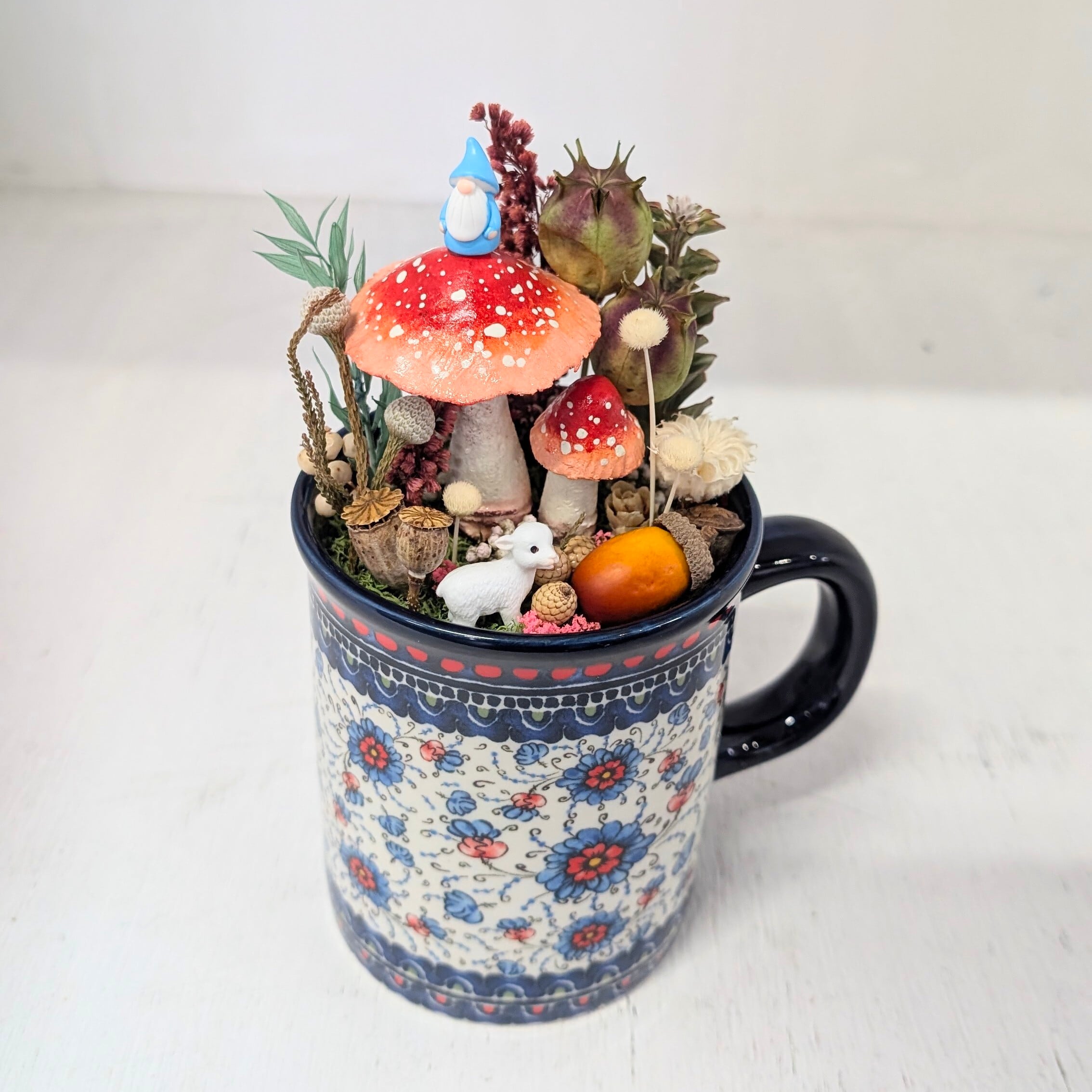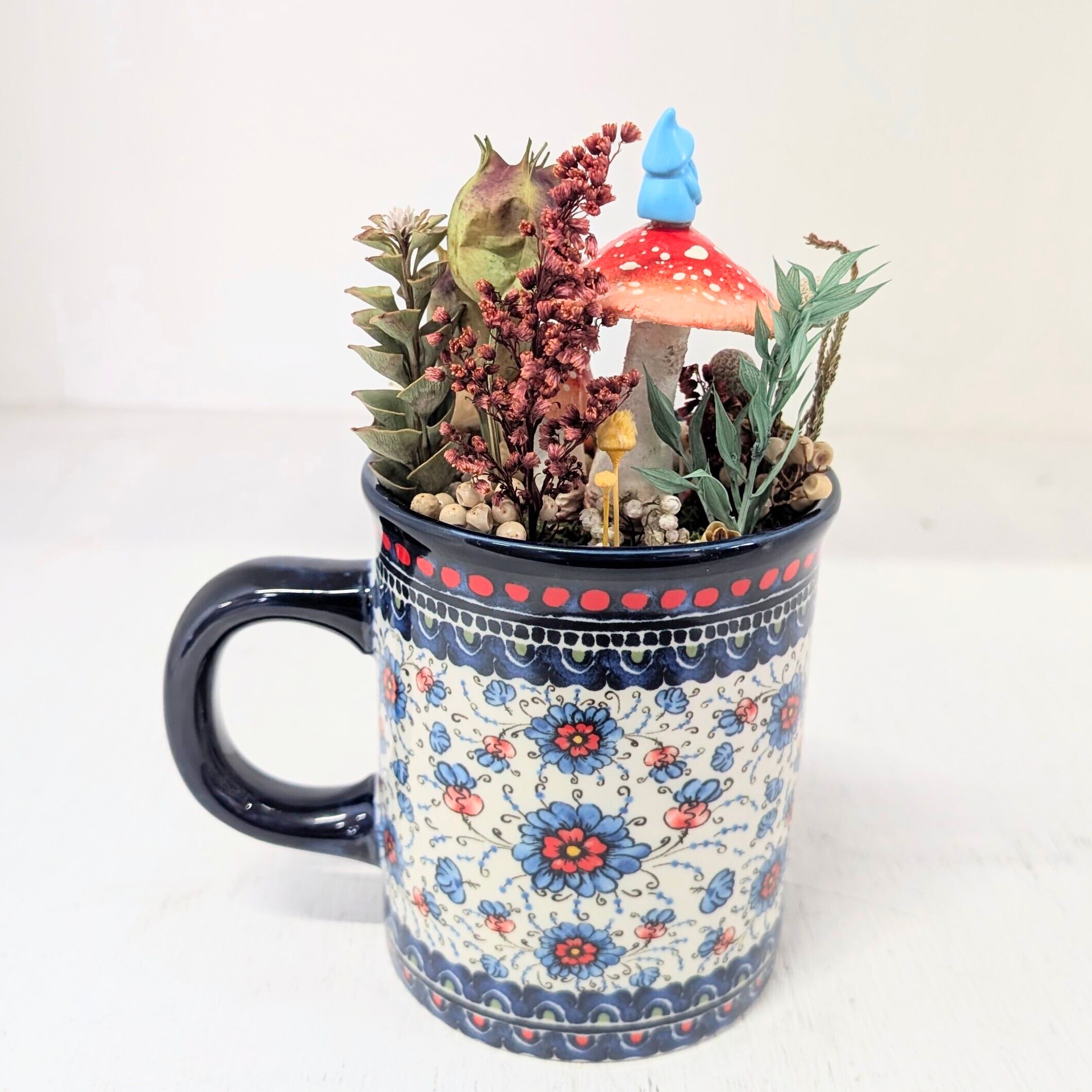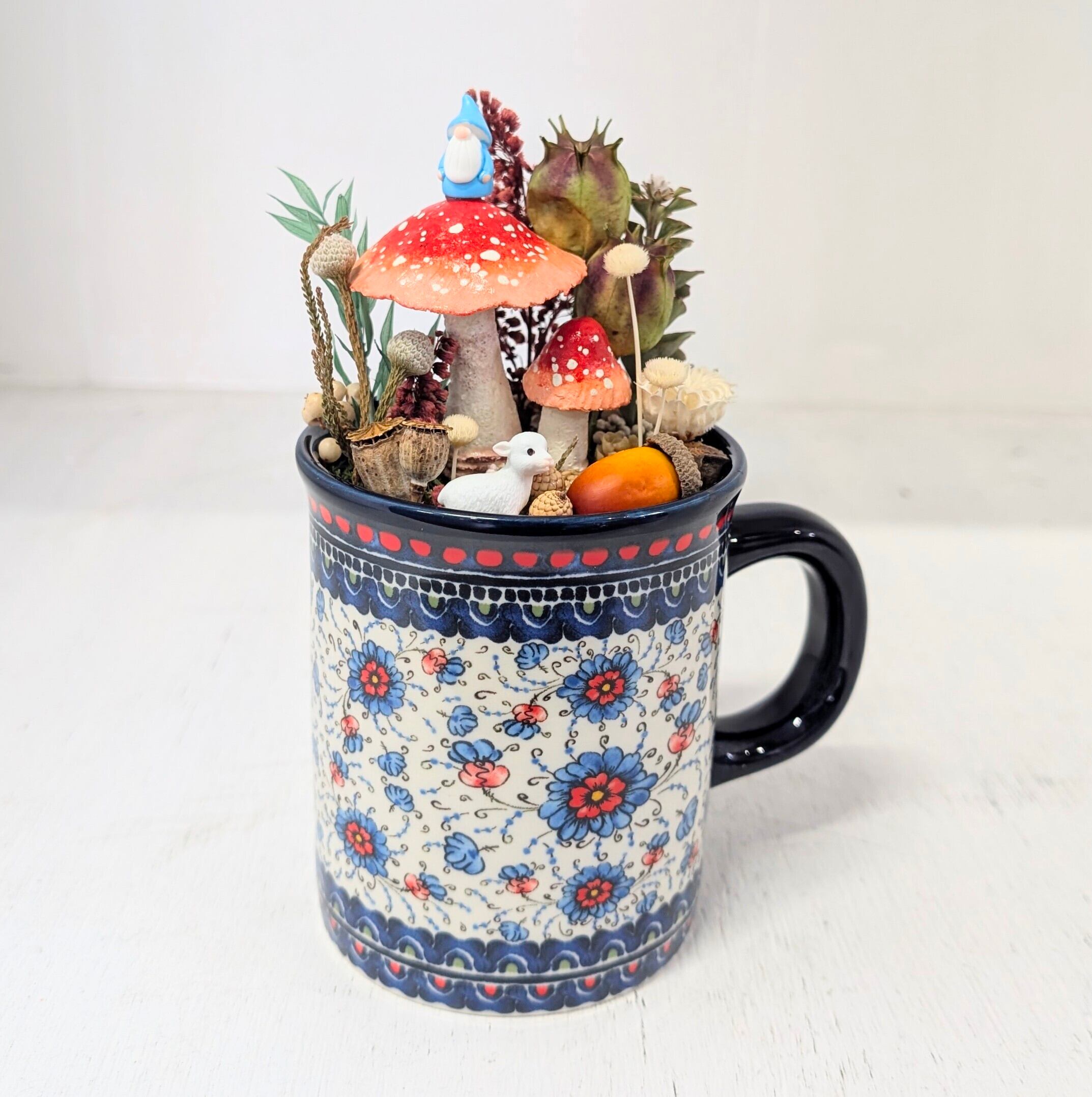 物語に出てくるノームの住む森をイメージしたマグカップのインテリア、一点物となっております。