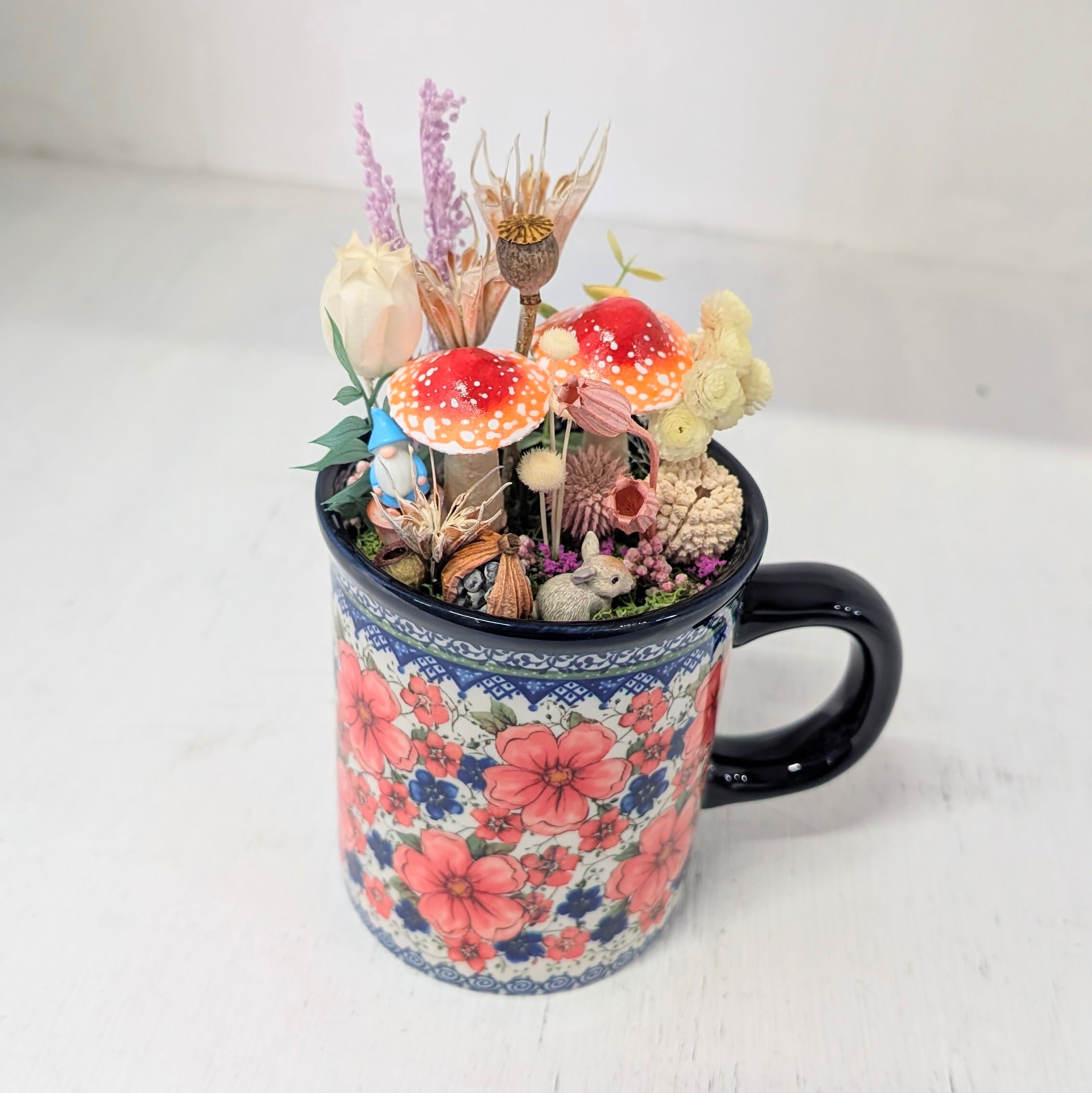 物語に出てくるノームの住む森をイメージしたマグカップのインテリア、一点物となっております。